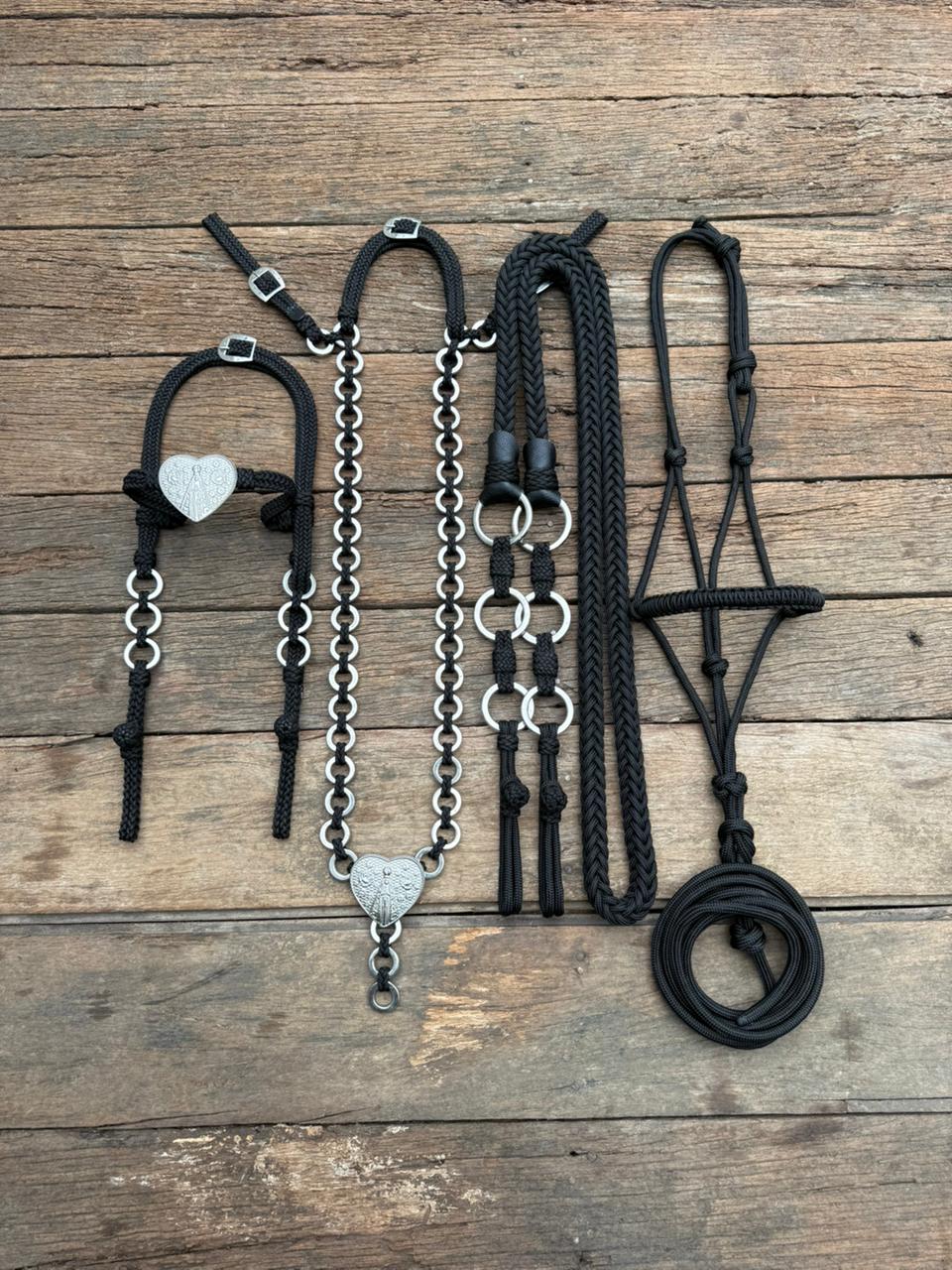 Traia de frente confeccionada de forma artesanal utilizando corda de polipropileno e ferragens inox.