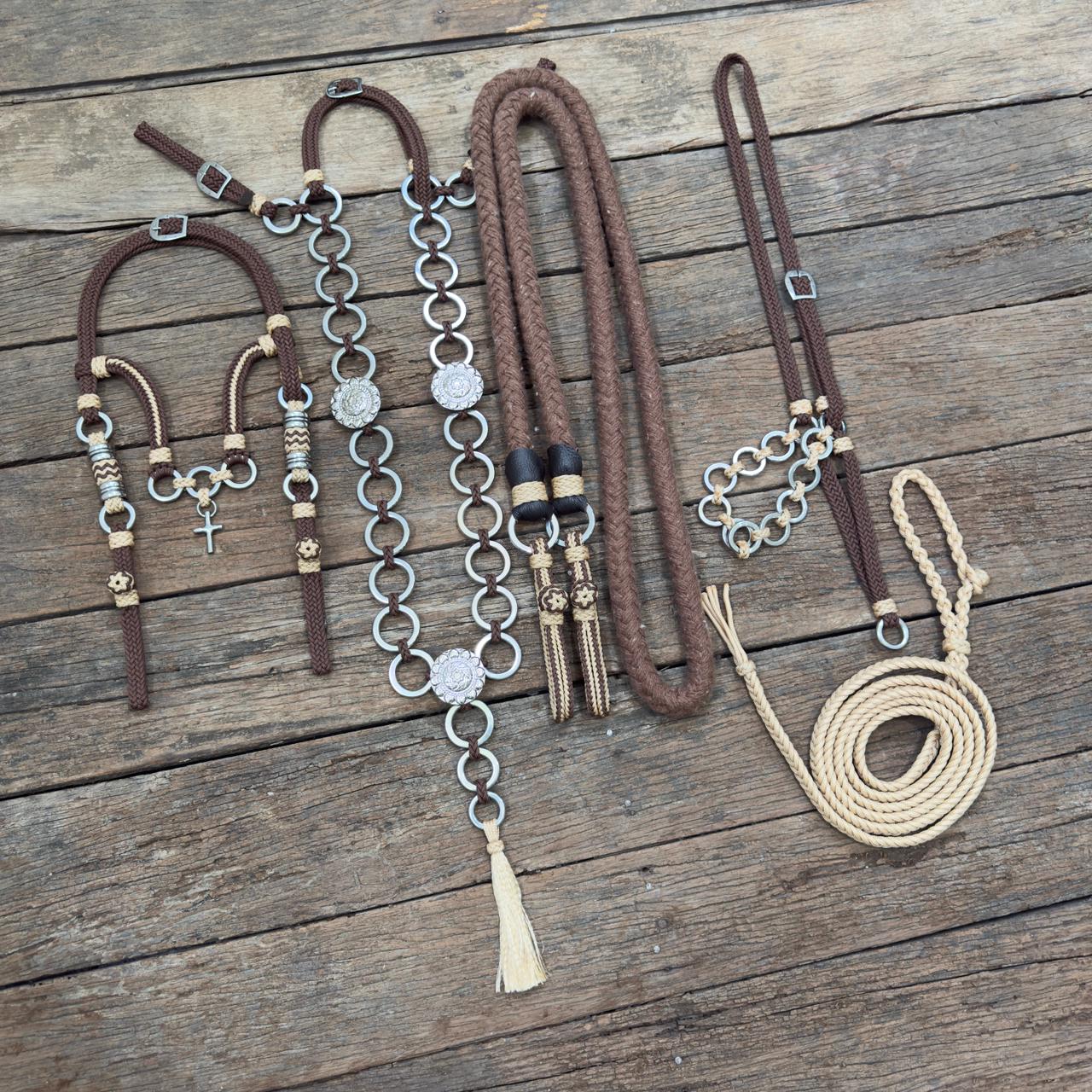 Traia de frente confeccionada de forma artesanal utilizando corda de polipropileno e ferragens inox.