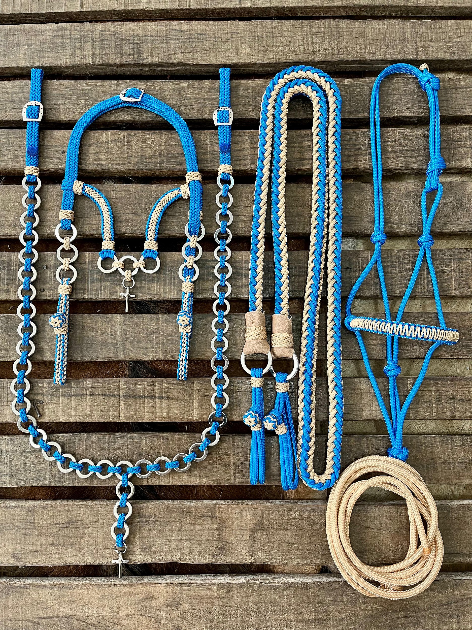 Traia de frente confeccionada de forma artesanal utilizando corda de polipropileno e ferragens inox.