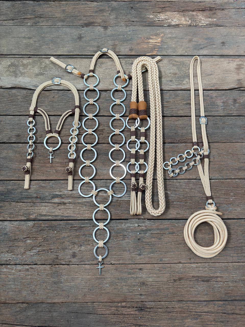 Traia de frente confeccionada de forma artesanal utilizando corda de polipropileno e ferragens inox.